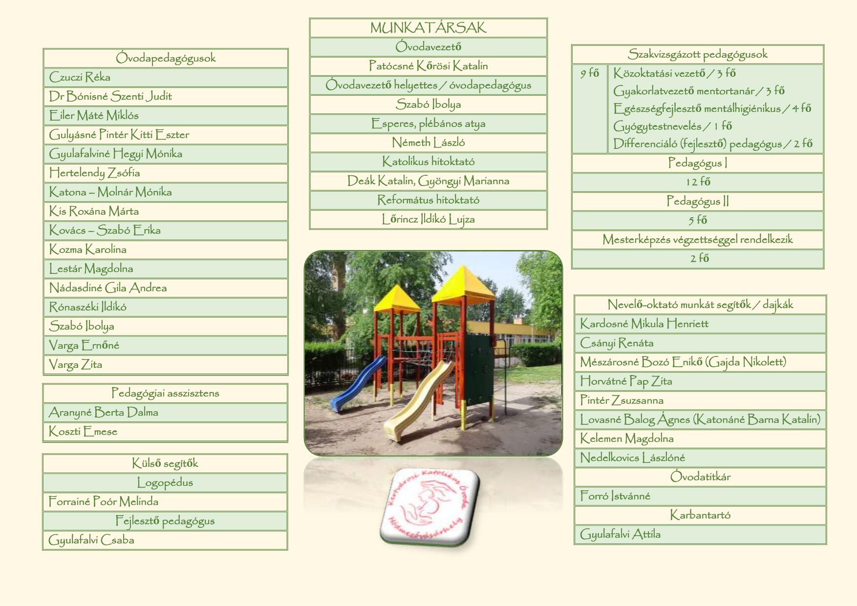 KERTVÁROSI KATOLIKUS ÓVODA - 6800 Hódmezővásárhely, Hóvirág u. 5. sz.